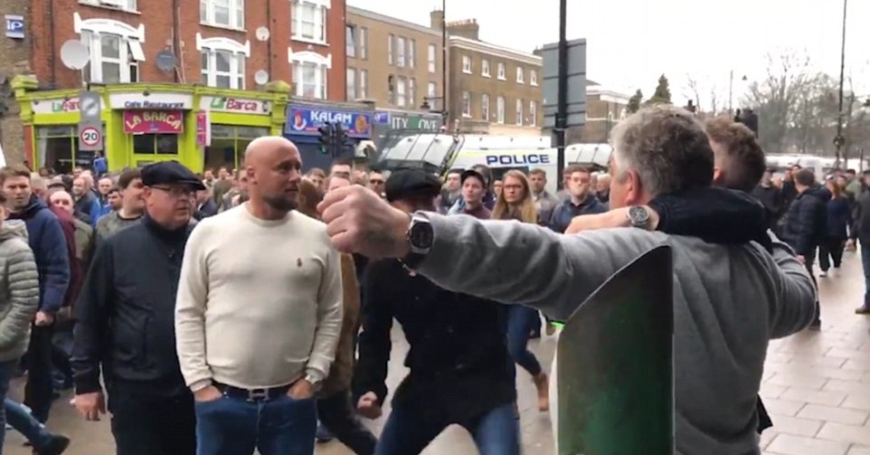 Antes del partido, los hooligans del Millwall, los considerados más violentos de Inglaterra, sembraron el miedo entre la afición de los Spurs. A pesar de las fuertes medidas de seguridad, la previa nos dejó este brutal puñetazo de un hincha del Millwall que tumbó a un seguidor del Tottenham que animaba a su equipo.