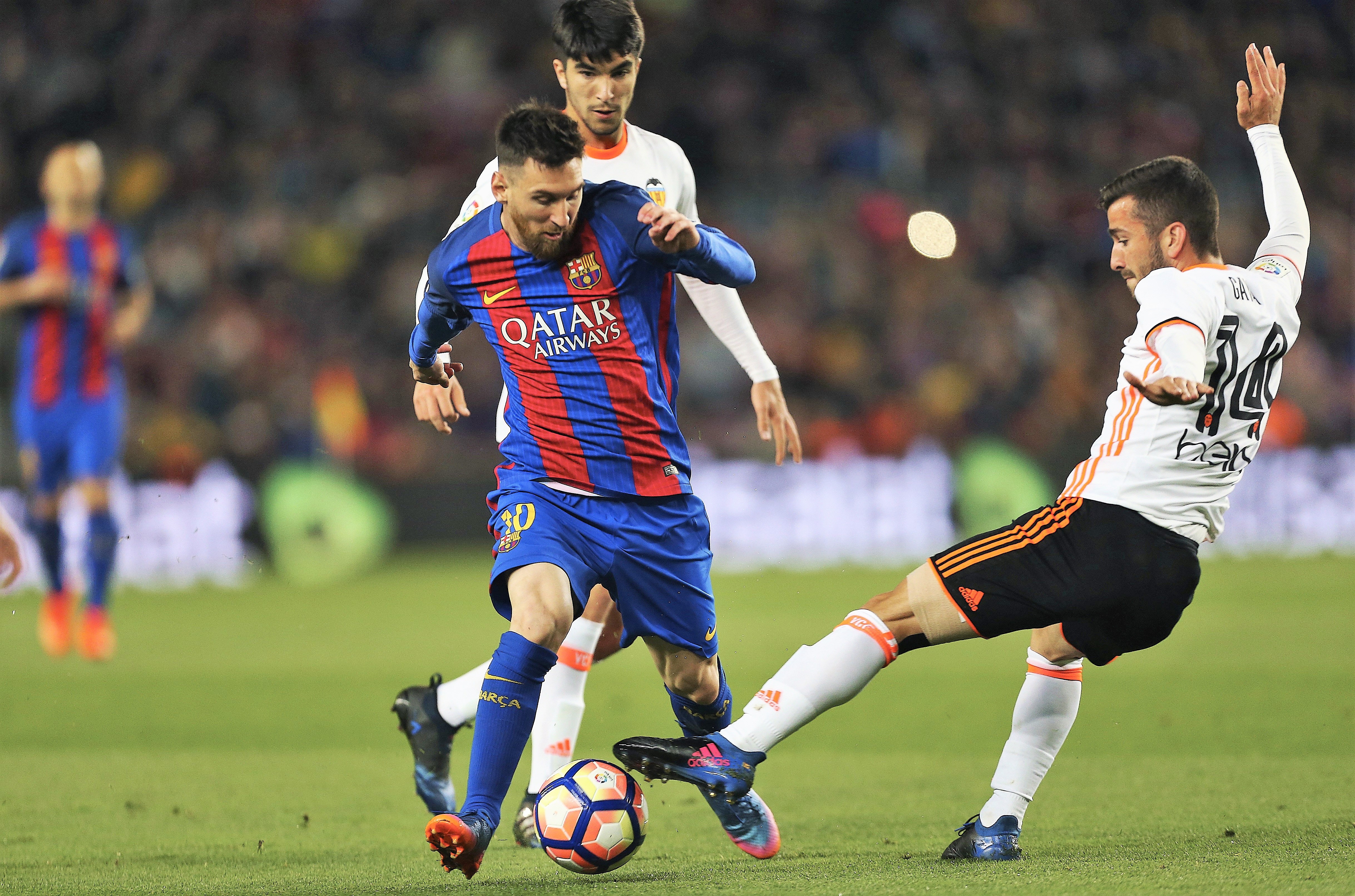 Goles: 0-1, m.29: Mangala. 1-1, m.35: Luis Suárez. 1-2, m.45: Messi (p.). 2-2, m.45+1: Munir. 3-2, m.53: Messi. 4-2, m.89: André Gomes