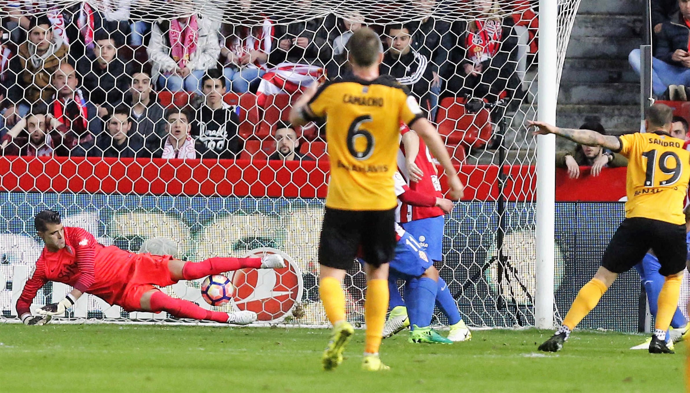 Un gol de Sandro en el minuto 39 dio la victoria Málaga frente al Sporting de Gijón, la primera con Michel como entrenador, que deja a los locales en situación muy crítica, con el descenso a Segunda División cada vez más cerca.