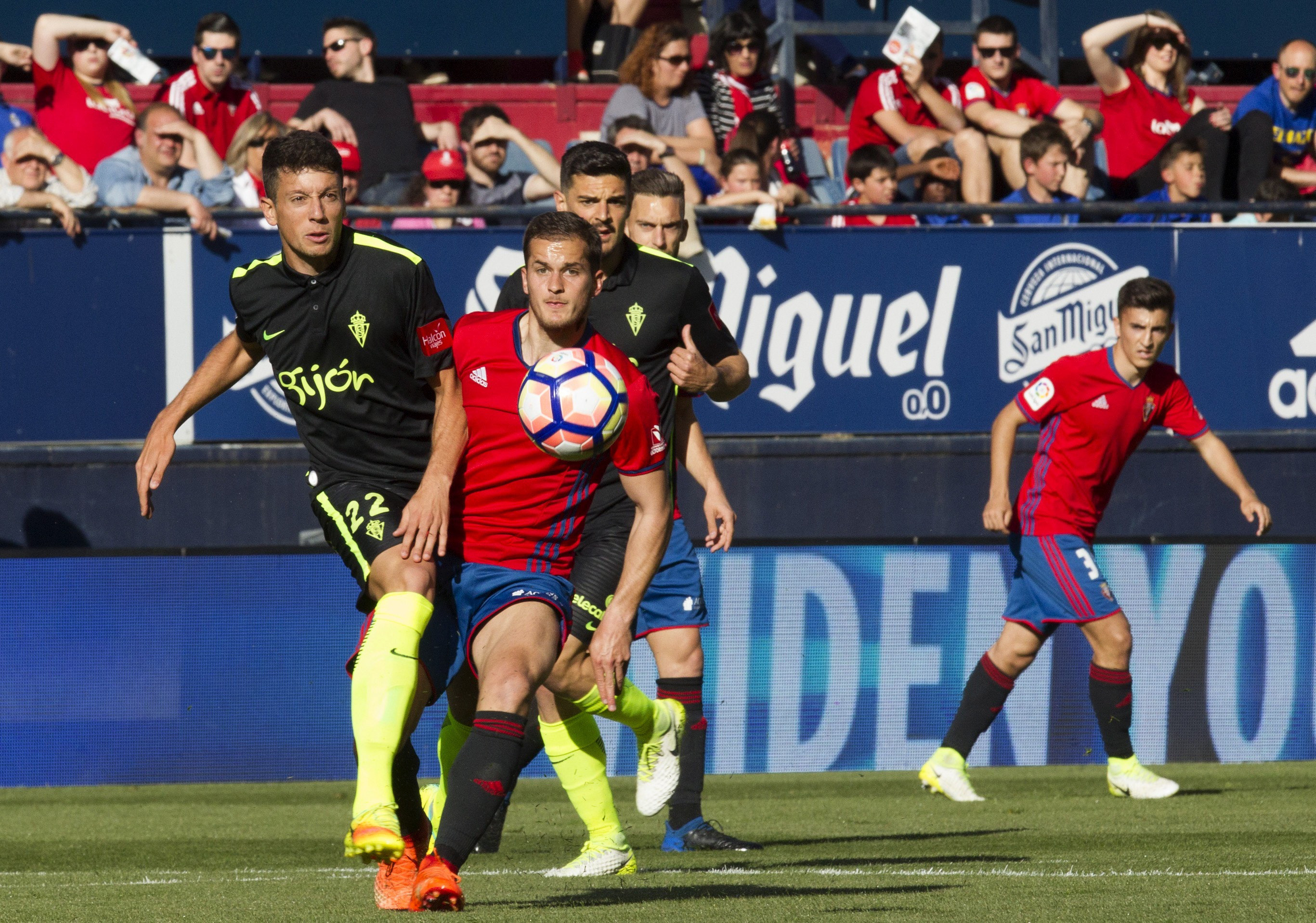 El Sporting consiguió reducir un punto con el descenso, para situarse a cuatro de la permanencia, al empatar ante Osasuna en El Sadar tras remontar dos goles en los últimos minutos (2-2).