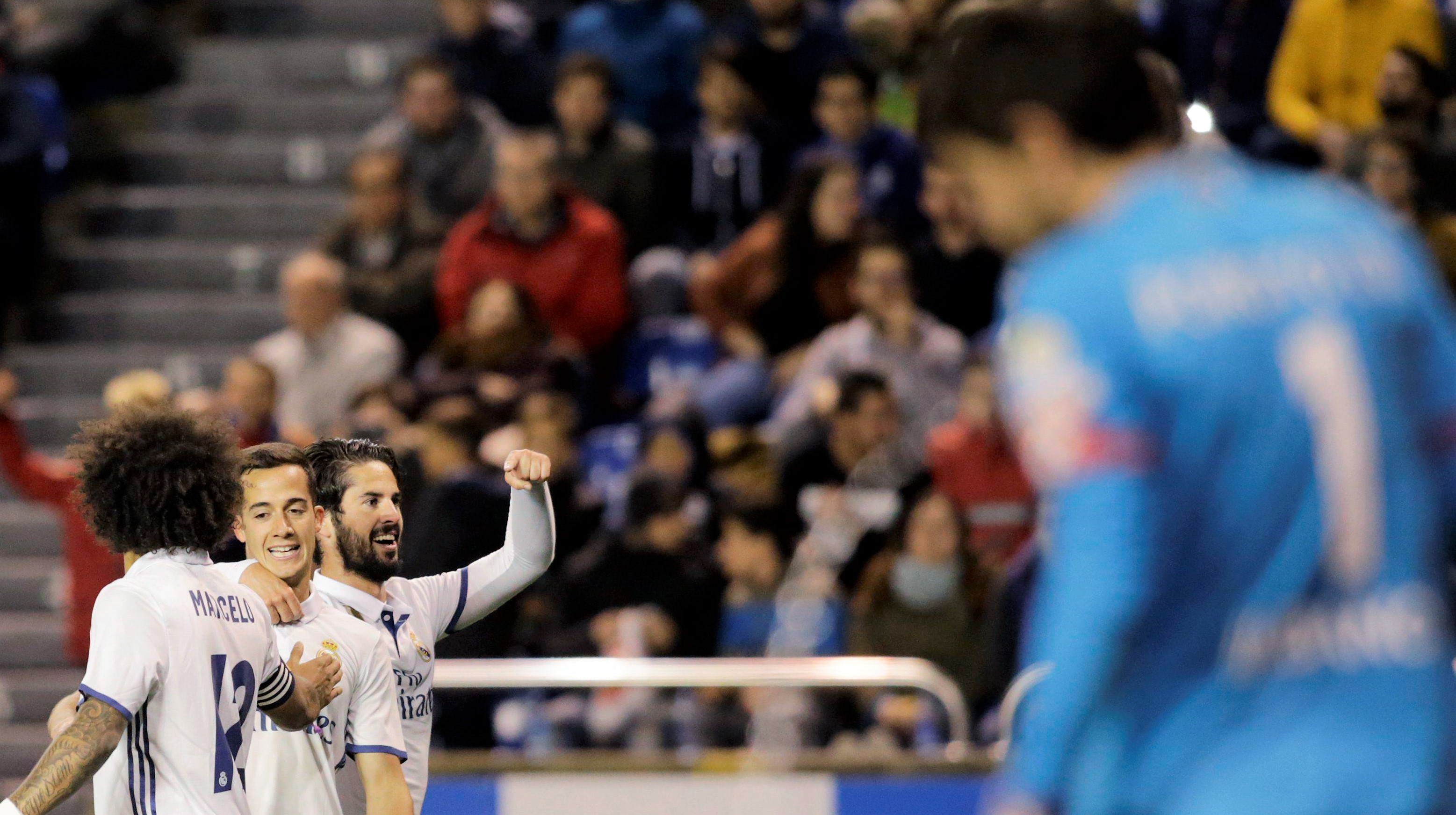 Pero no sólo él, pues también han brillado sus compañeros: James hizo un doblete, Morata abrió el marcador —aunque luego desperdició varias ocasiones claras para haber aumentado su cuenta particular—, Asensio se mostró eléctrico en las conducciones de balón y Kovacic estuvo soberbio, tanto en tareas defensivas como en las aportaciones en ataque. Quien quizá no brilló tanto esta vez fue Lucas Vázquez, aunque el gallego, en un partido especial para él al jugar en casa —nació hace ya casi 26 años en la localidad coruñesa de Curtis—, resultó providencial marcando el gol de la tranquilidad antes del descanso, poco después de que Florin Andone hubiera acortado distancias para el Dépor.