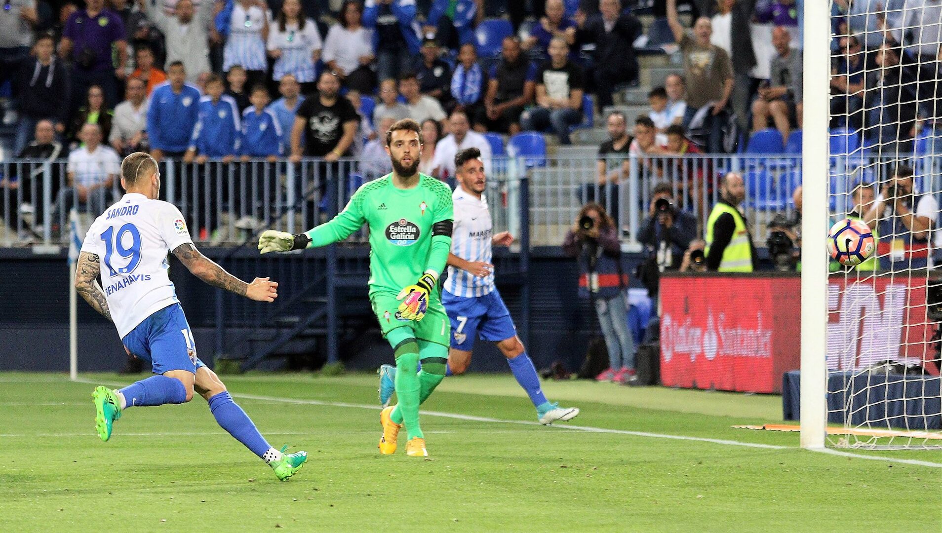 El Málaga, con Sandro en plan estelar —el exbarcelonista consiguió su decimocuarto gol en Liga—, ha doblegado por 3-0 a un Celta de Vigo que pareció estar más pendiente del partido de Old Trafford ante el Manchester United, donde el próxima jueves se juega el pase a la final de la Europa League.
