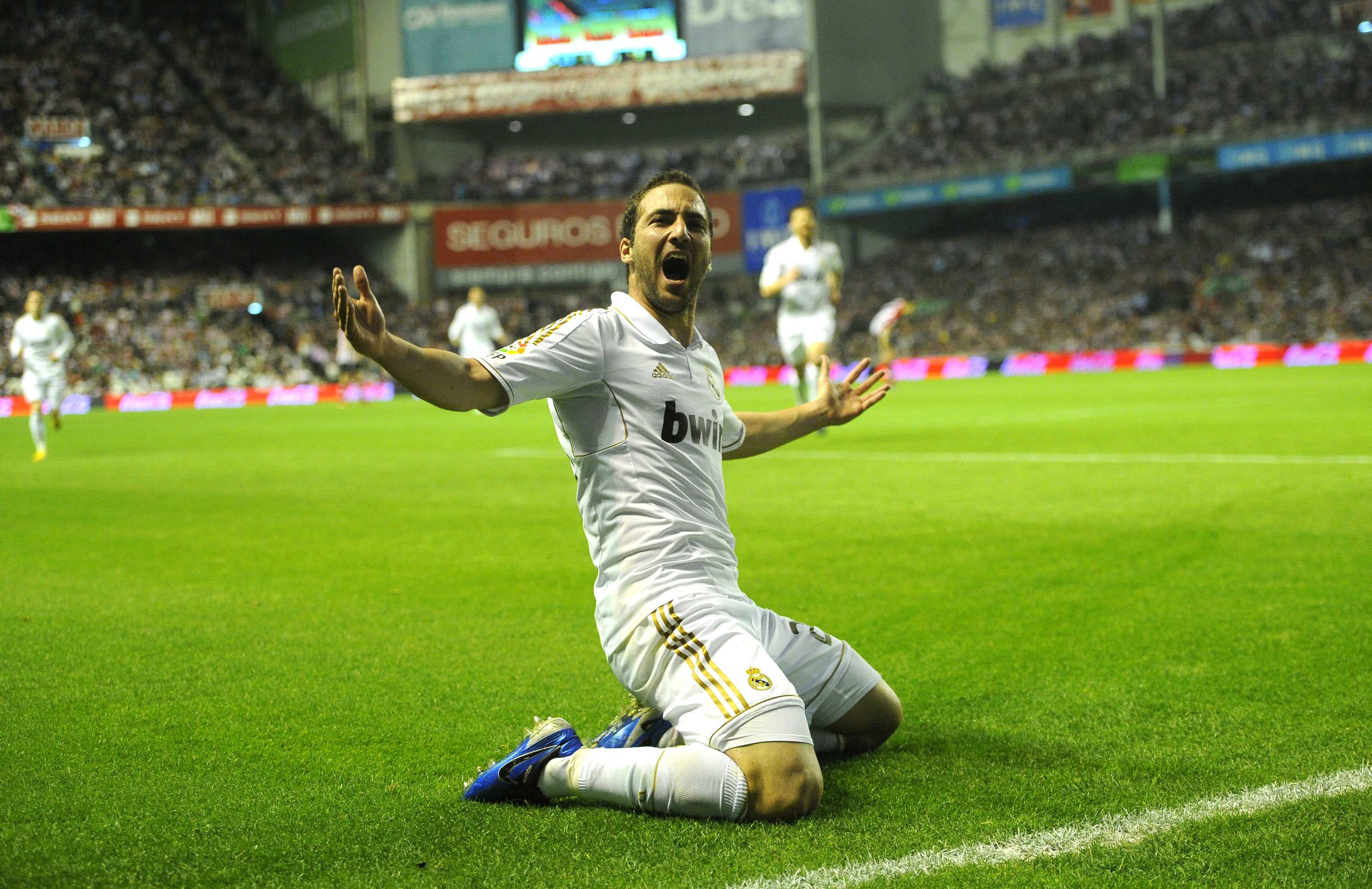 El conjunto de Bernd Schuster ganó la Liga en Pamplona en la jornada 35 remontando el 1-0 inicial con goles de Robben e Higuaín.