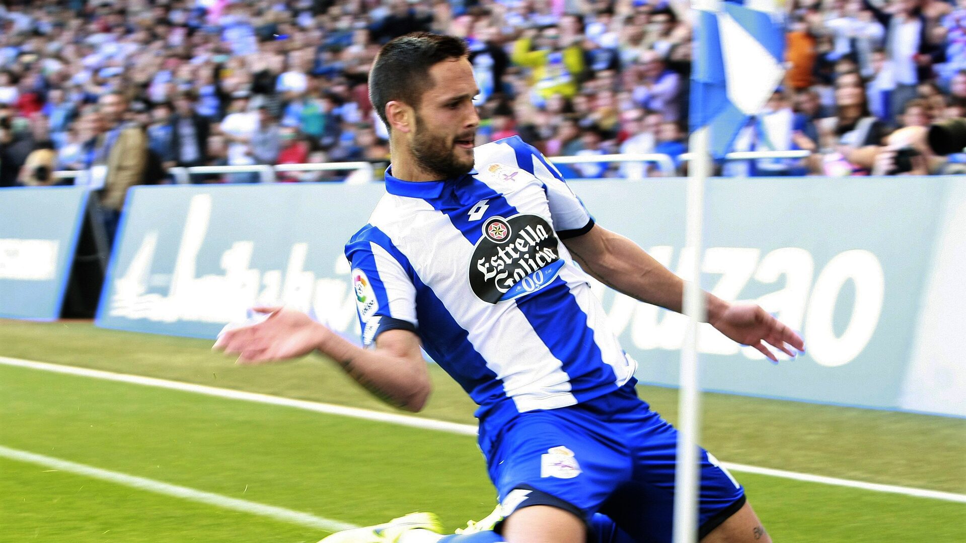 En Riazor tardó cuatro minutos en encajar el primero del partido tras un robo del brasileño Guilherme dos Santos que aprovechó Andone, el máximo goleador del Deportivo, para convertir ante Raúl Lizoain con un disparo cruzado El delantero rumano se llevó las dos manos a las orejas en su celebración como respuesta a los cánticos del fondo de los Riazor Blues, aunque en el lado contrario del campo. Laure, el capitán, se las apartó.
