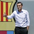 Ernesto Valverde posa junto al escudo del FC Barcelona. | EFE Valverde: "Quiero hacer al Barça más grande de lo que ya es" El Txingurri, que este jueves firmará su contrato y será presentado, ya ha posado junto al escudo en la puerta de las oficinas del club.