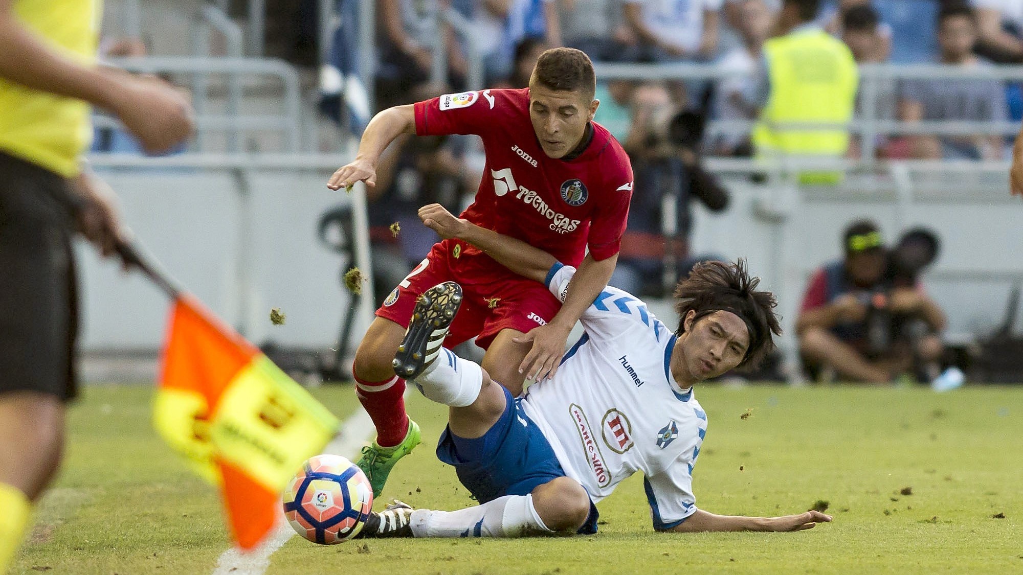 Los tinerfeños acertaron en su primer remate a puerta. Un córner desde la derecha lanzado por el japonés Gaku permitió a Jorge Sáenz, solo sobre la línea frontal del área pequeña, cabecear con comodidad y sorprender a un Guaita que sólo pudo ver cómo el balón alcanzaba su red. En los últimos minutos de la primera parte se pudo apreciar un equipo madrileño un poco más ambicioso en ataque, pero no lo suficiente como para importunar a Dani, que apenas intervino en los primeros 45 minutos.