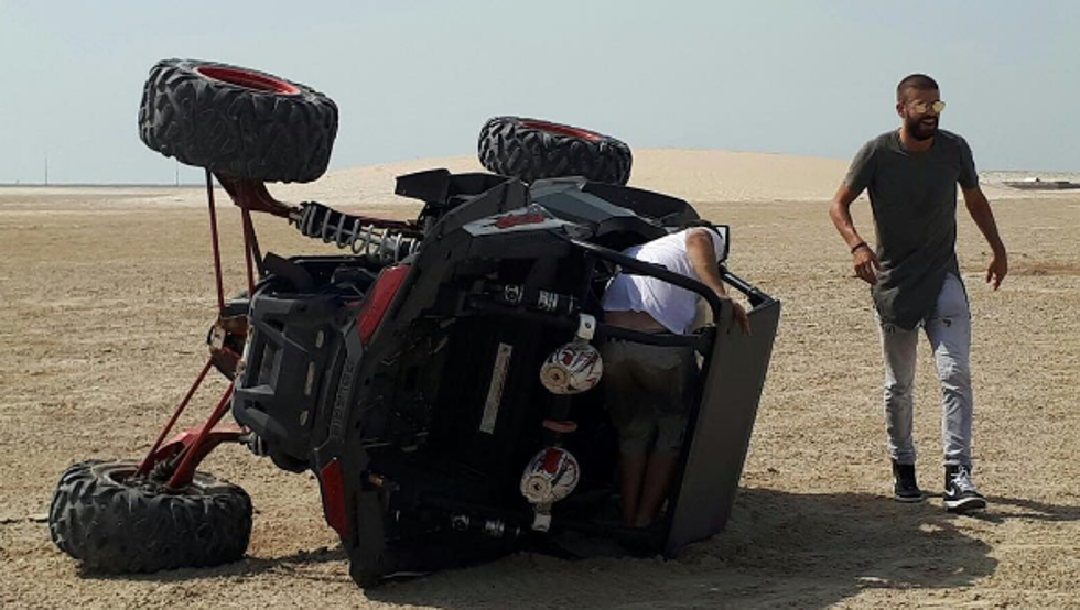 Mientras disfrutaba con un amigo de una carrera por las dunas, sufrió un percance y su buggy volcó.