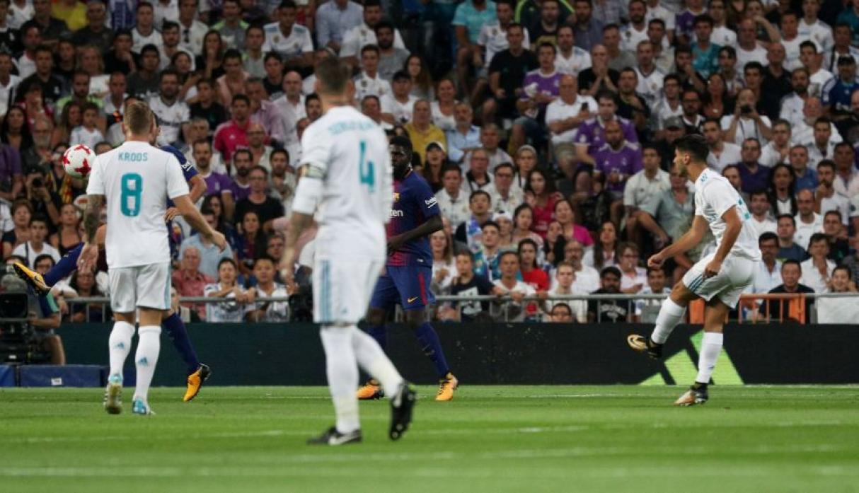 Asensio, ni corto ni perezoso, se sacó de la chistera un espectacular remate desde 30 metros que supuso el 1-0 en los primeros minutos de partido. Un torpedo teledirigido que describió una trayectoria con curva incluida y sorprendió a propios y extraños. Ter Stegen hizo la estatua. ¡Qué bueno es este chaval!