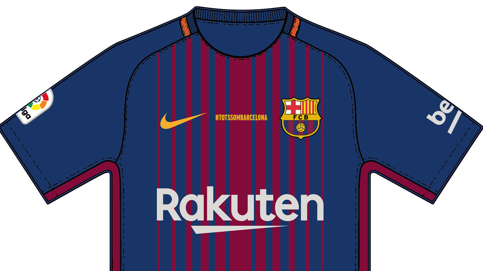 Los jugadores en el partido ante el Betis del domingo, lucirán un pequeño eslogan, '#TotsSomBarcelona' en la parte delantera de la camiseta y, en lugar de su nombre o apellido, portarán su dorsal acompañado de la palabra 'Barcelona'.