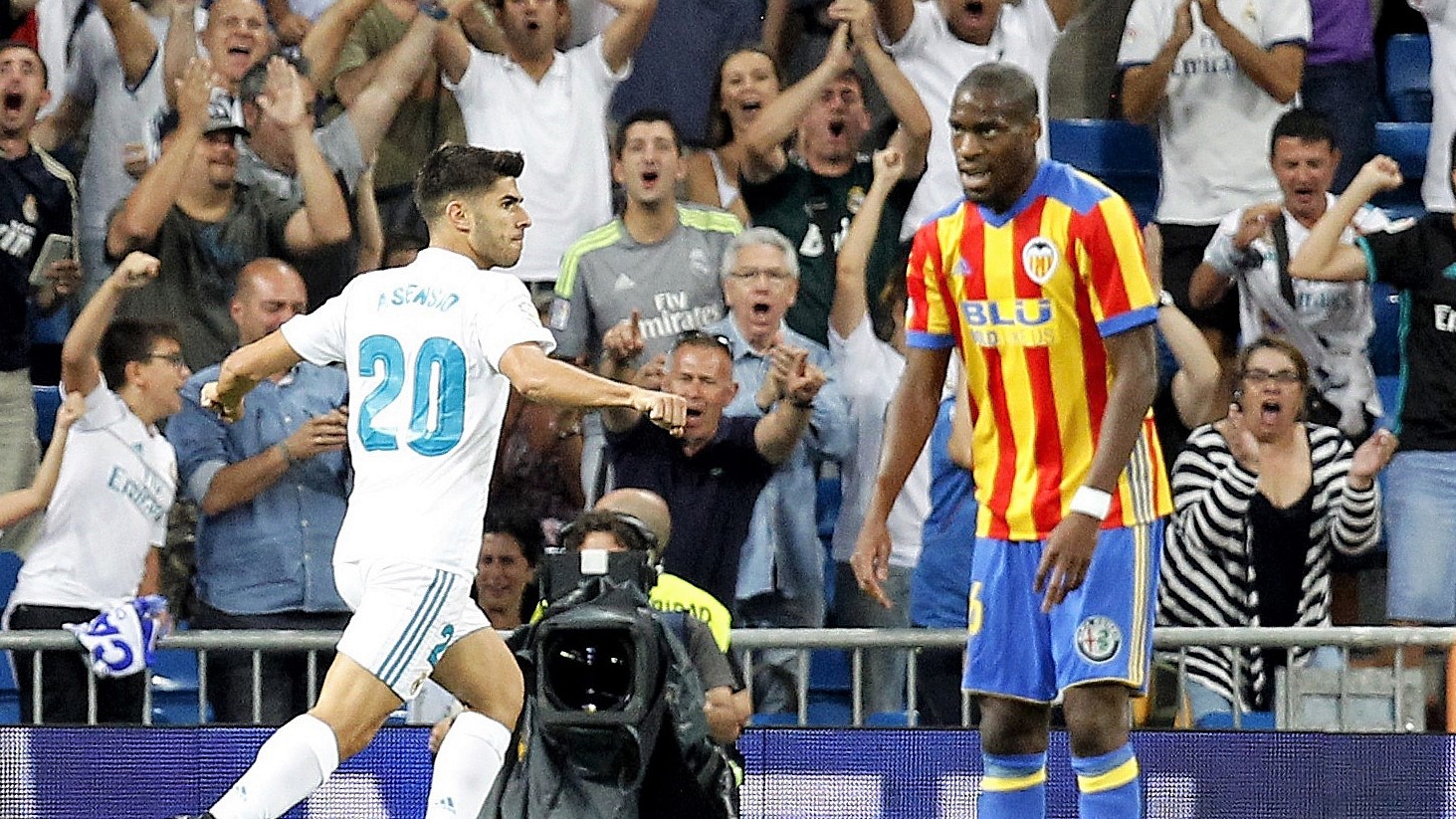 Marco Asensio ya es una realidad. El joven crack balear, que tiene una zurda que es oro puro, fue el mejor esta noche sobre el césped del Santiago Bernabéu. Sin Cristiano Ronaldo, el 20 del Real Madrid volvió a echarse el equipo a la espalda, firmando un doblete espectacular y dejando destellos de muchísima calidad. El problema es que enfrente había un Valencia muy serio. Una vez más, el conjunto ché poniéndole las cosas muy difíciles al actual campeón en su feudo. Presenta otra cara el equipo valenciano con Marcelino García Toral en el banquillo. El técnico asturiano, que hizo debutar a Jeison Murillo y Geoffrey Kongogbia en un campo tan difícil como éste —notable partido de ambos, especialmente del francés—, poco a poco va engrasando la maquinaria valencianista, construyendo un equipo que sea capaz de volver a ilusionar a la afición tras varias temporadas repletas de sinsabores.