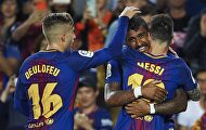 Paulinho y Messi celebando el segundo gol del encuentro Messi, con un póquer, destroza al Eibar (6-1) Jorge Morán