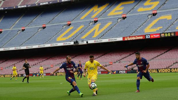 En un estadio en el que el único ruido ambiental fueron los gritos de los jugadores y las instrucciones de los técnicos, el duelo empezó con el Barcelona dominando el primer cuarto de hora, si bien no generó muchos problemas al cuadro de Pako Ayestarán, que hoy se estrenaba en el banquillo amarillo.