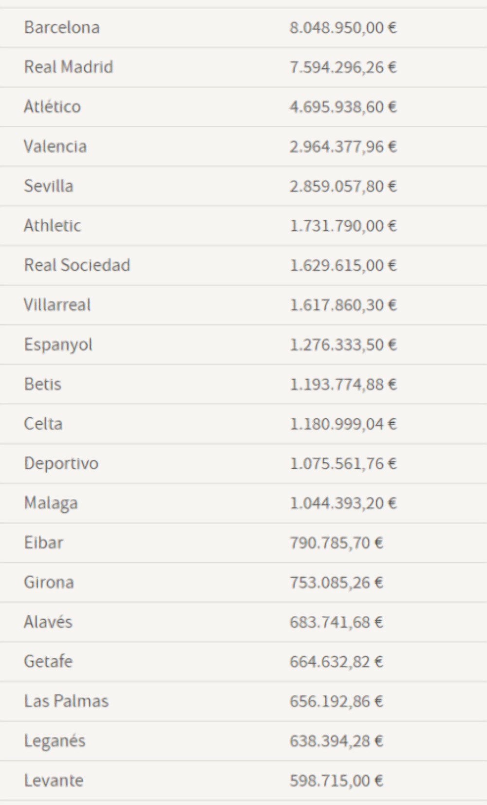 Y en La Liga, ¿Cuánto paga de media cada equipo?