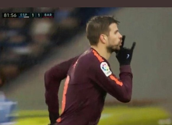 Con 1-0 en el marcador, Piqué aprovechó un centro de Messi para, de cabeza, poner el empate. La celebración del central español no dejó indiferente a nadie. Piqué mandó callar a la grada llevándose el dedo a la boca después de recibir una fortísima pitada por parte de la hinchada del Espanyol.