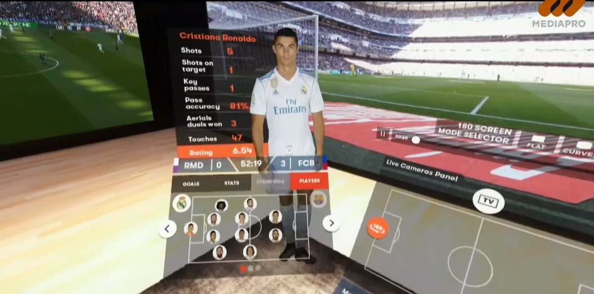 Pero el plato estrella del Innovation Showcase es la Realidad Virtual. Los equipos I+D de Mediapro y LaLiga están experimentando con esta tecnología, que cambiará la manera de ver el fútbol y el deporte en general. En esta ocasión, las gafas de realidad virtual gracias a las gafas Samsung Gear permiten seguir ese Madrid-Barça en un entorno multicámara (180º y 360ª), las mejores jugadas y repeticiones en 3D o las impresionantes estadísticas de Mediacoach, muchas de las cuales ya se ofrecen en directo en los partidos más destacados de cada jornada.