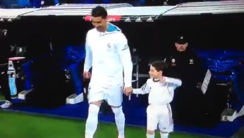 Pero el protagonista fue esta vez el niño con el que CR7 iba agarrado de la mano, que imitaba el salto del crack luso cuando ambos entraban juntos al campo antes de comenzar el partido.