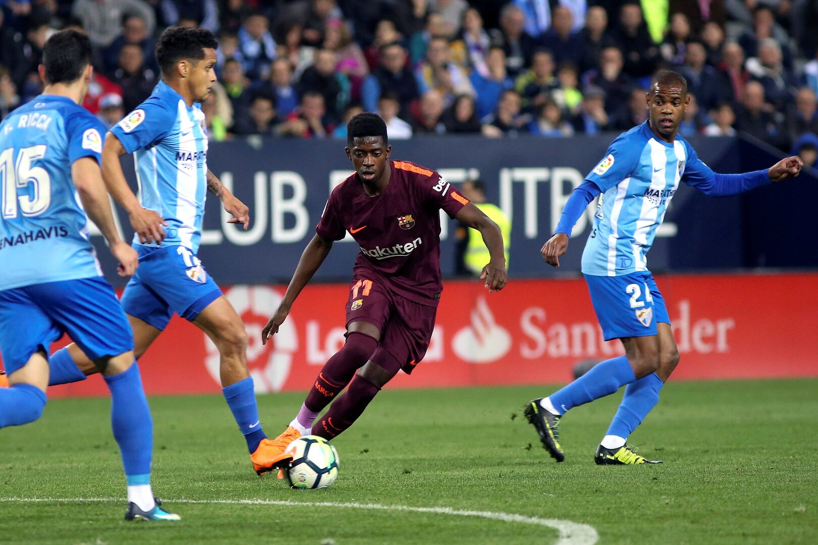 El Málaga intentaba responder con un acercamiento del punta uruguayo Diego Rolan y un disparo lejano del delantero marroquí En-Nesyri. El Barcelona controlaba el encuentro ante un Málaga romo, escaso, corto, sin calidad y metido en su campo. Y la sentencia llegó en el minuto 26 con un centro por la derecha de Dembelé y Coutinho, con un gran recurso, de tacón, batía a Roberto.