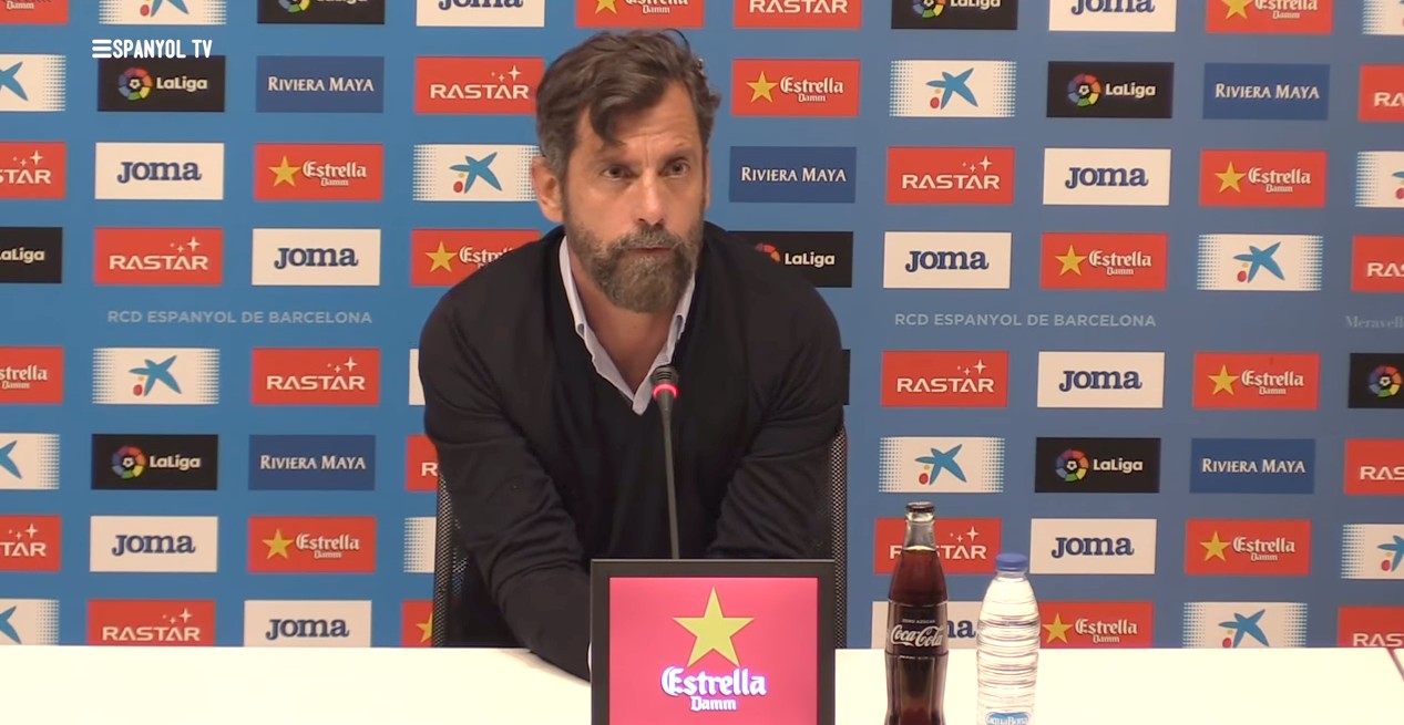 Un periodista de Pericos Online preguntó a Quique si había pensado dimitir y si el Espanyol había "tocado fondo" tras la derrota ante el Eibar. El técnico madrileño le respondió muy molesto.