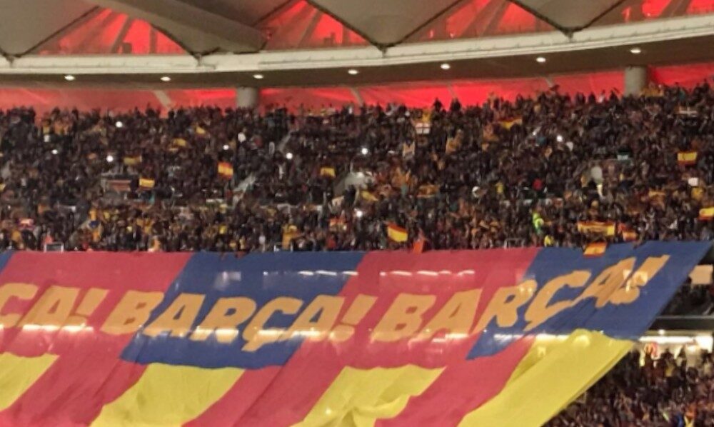 La situación fue todavía más importante dentro del estadio. En los últimos dos años, las esteladas siempre fueron mayoría en el sector barcelonista, pero en este caso la competición fue muy disputada. La final de 2018 ha dejado patente que parte de la hinchada catalana quiere demostrar que se puede sentir con el mismo orgullo los colores de la bandera y los de la camiseta azulgrana. Nunca antes se habían visto tantas banderas de España entre aficionados del Barça.