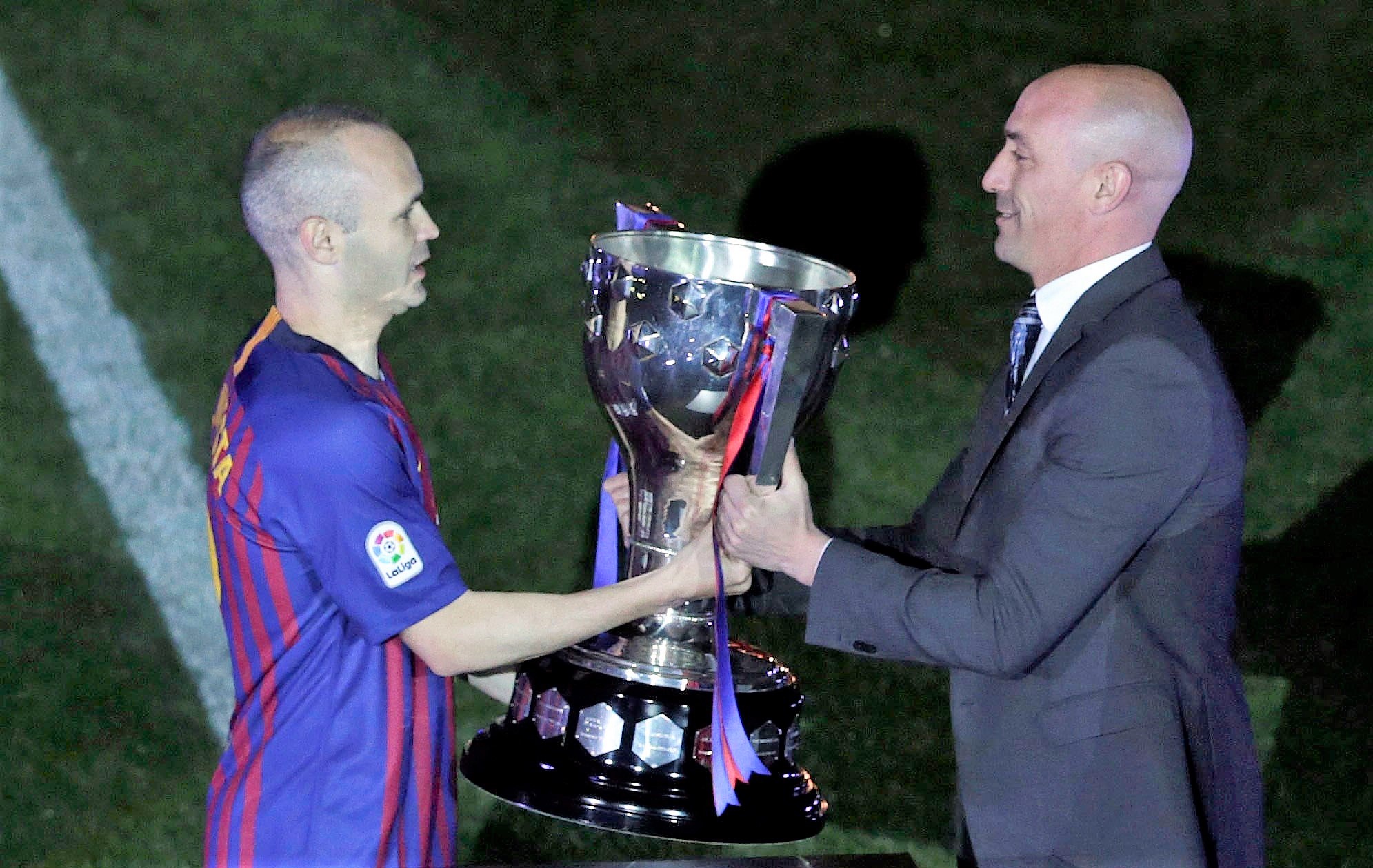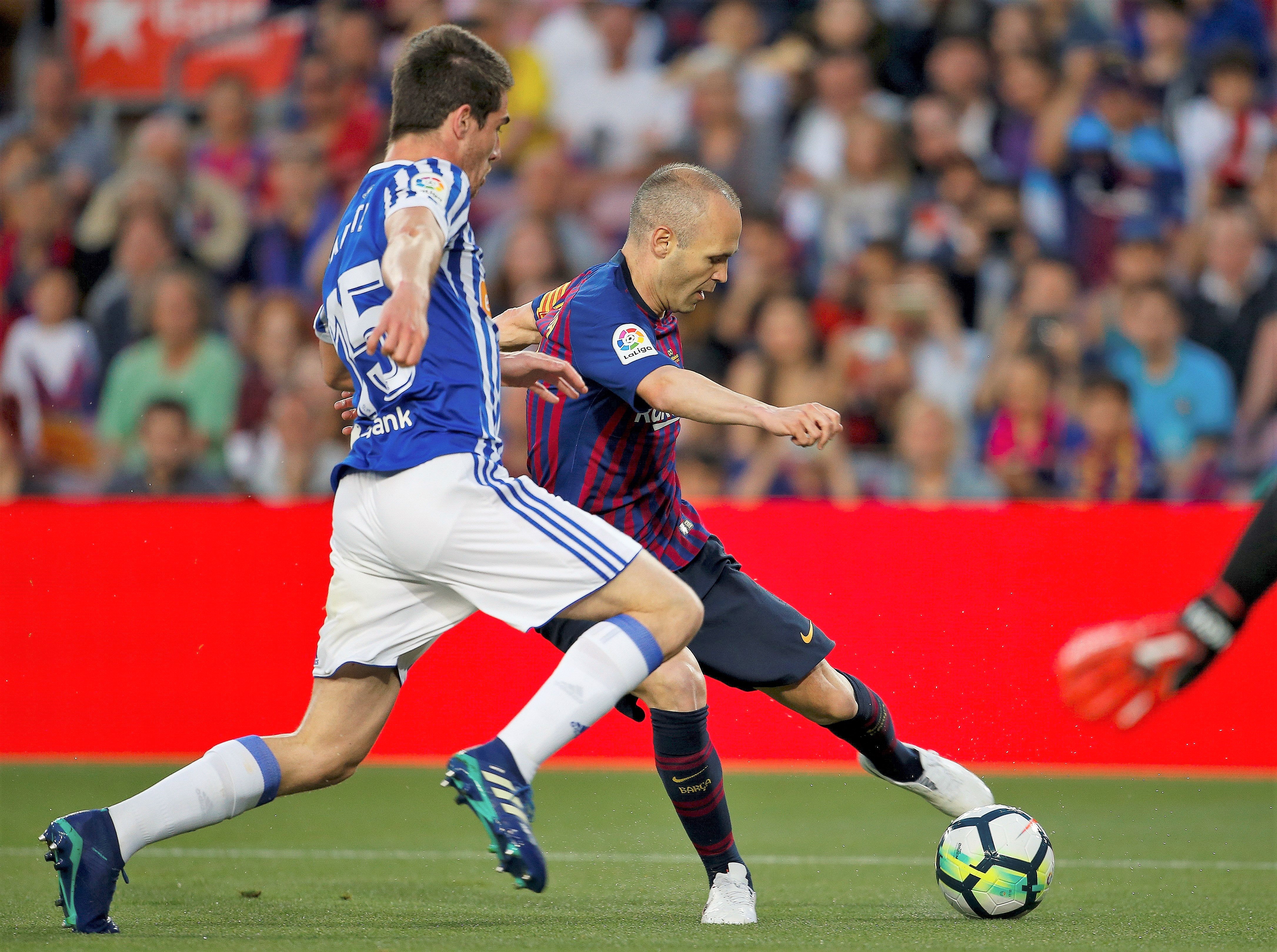 Fútbol, música, fuegos artificiales y Andrés Iniesta, que ante la Real Sociedad jugó su último partido con la camiseta azulgrana, fueron los grandes protagonistas en la fiesta para celebrar el doblete del equipo de Ernesto Valverde y despedir al crack manchego, una de las mayores leyendas que ha dado el fútbol español.