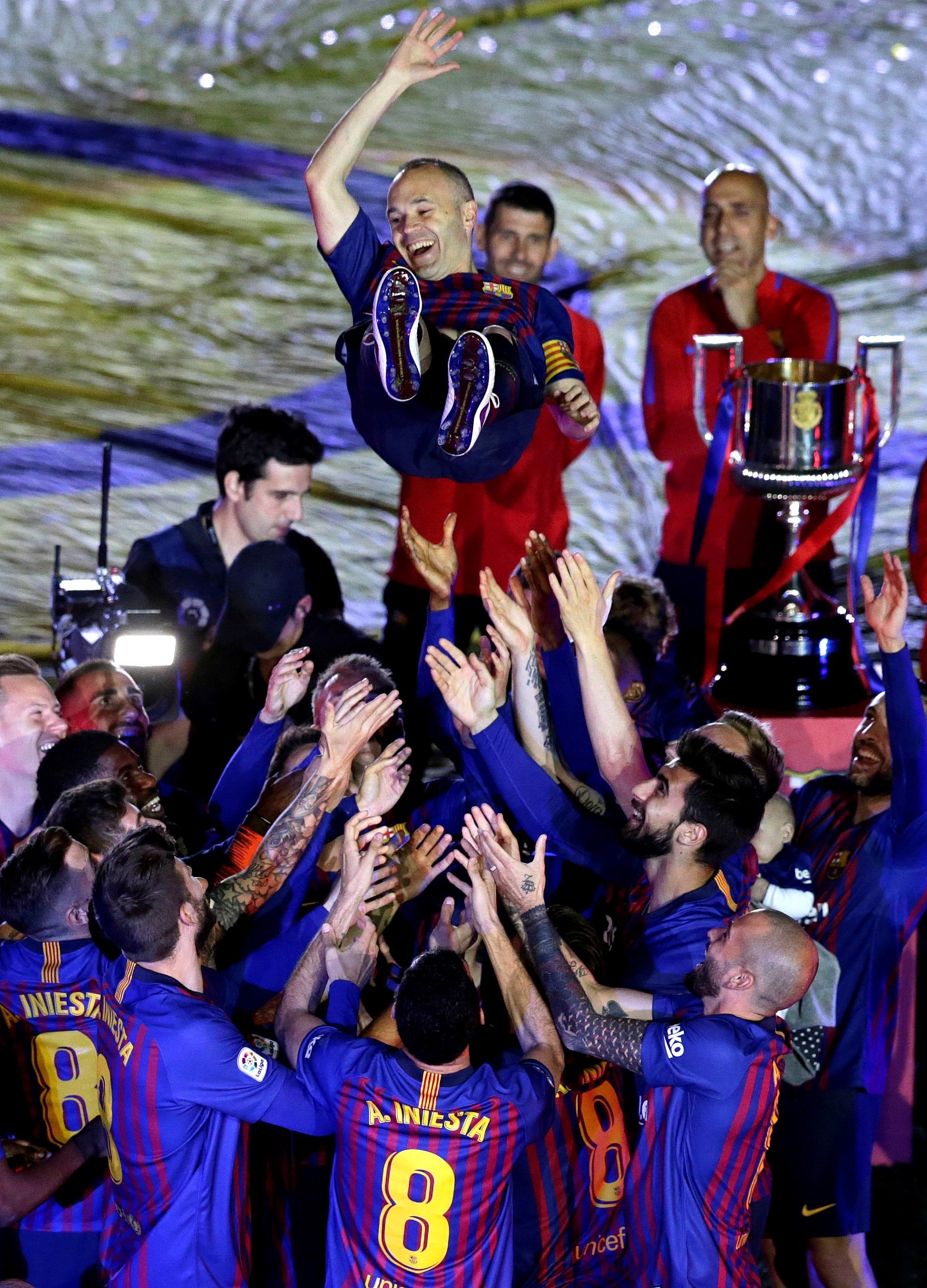Fiesta en el Camp Nou por el doblete y para despedir a Iniesta