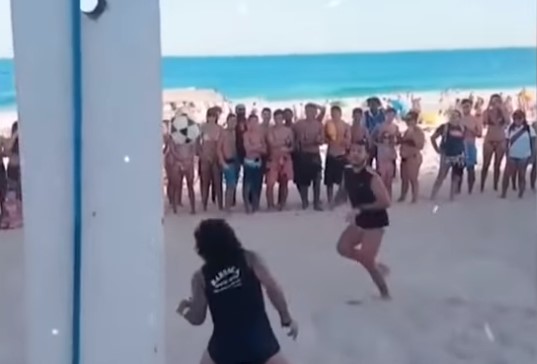 El lateral brasileño se divirtió jugando al futvoley con algunos aficionados que se acercaron a la playa de Ipanema. Dejó algunos detalles de mucha calidad.