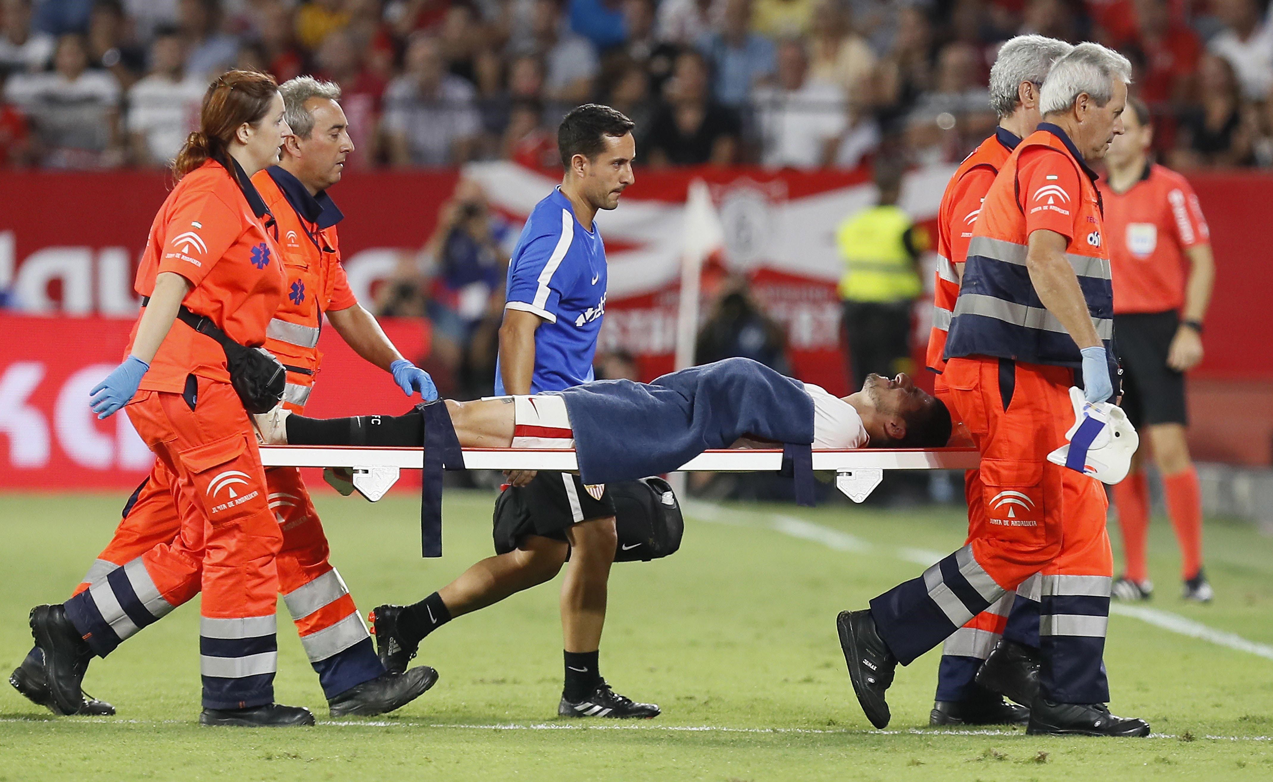 El Sevilla informó este lunes en un comunicado de que "aunque en principio no se observa fractura en el codo izquierdo, es necesario que baje la inflamación para poder descartarla al cien por cien". Será en los próximos días cuando se pueda "establecer un tiempo de recuperación del futbolista".