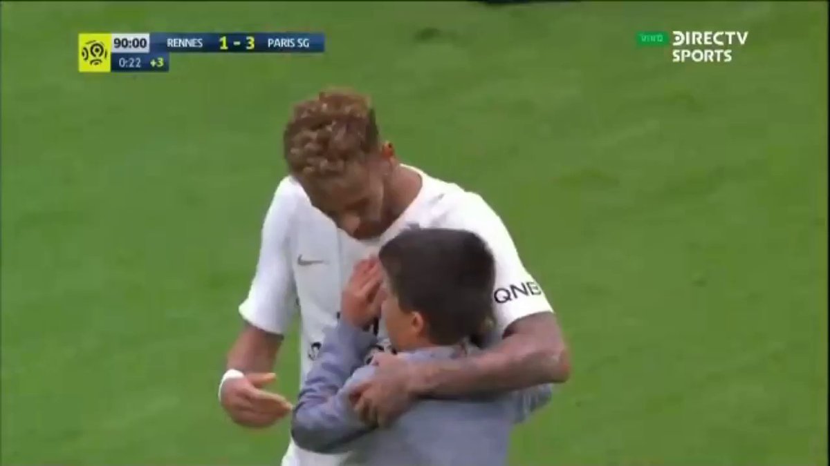 Cuando se dirigía a la banda, el brasileño se encontró con un niño que saltó al campo. Entre lágrimas, Neymar le agarró, dijo a la seguridad que lo dejaran, y terminó obsequiándole con su camiseta. Un gesto que el pequeño jamás olvidará.