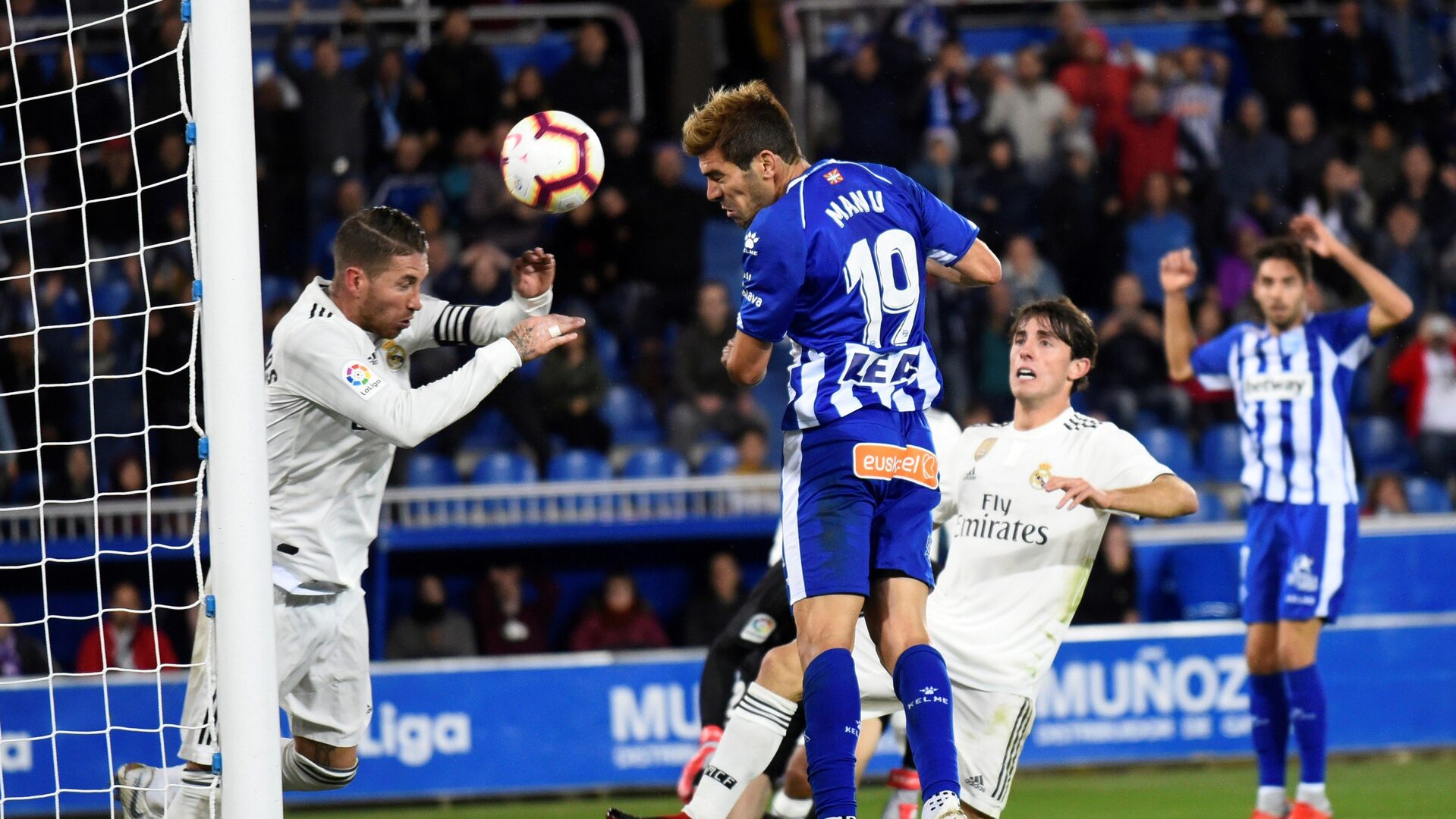 El Alavés poco a poco se iba quedando sin fuelle y todo parecía haber quedado visto para sentencia. Pero nada más lejos de la realidad. En el minuto 95, córner contra la portería de Courtois: Manu García aprovechó un rechace en un saque de esquina y en el segundo palo anotó de cabeza el único gol de la noche para dar los tres puntos al Glorioso, que recuperan la sonrisa tras dos tropiezos consecutivos -empate contra el Getafe y derrota frente al Levante- y de paso hurgar en la herida de un Real Madrid al que le siguen creciendo los enanos. Cada vez hay más voces que piden la cabeza de Julen Lopetegui, a quien se le empieza a poner cara de Rafa Benítez.