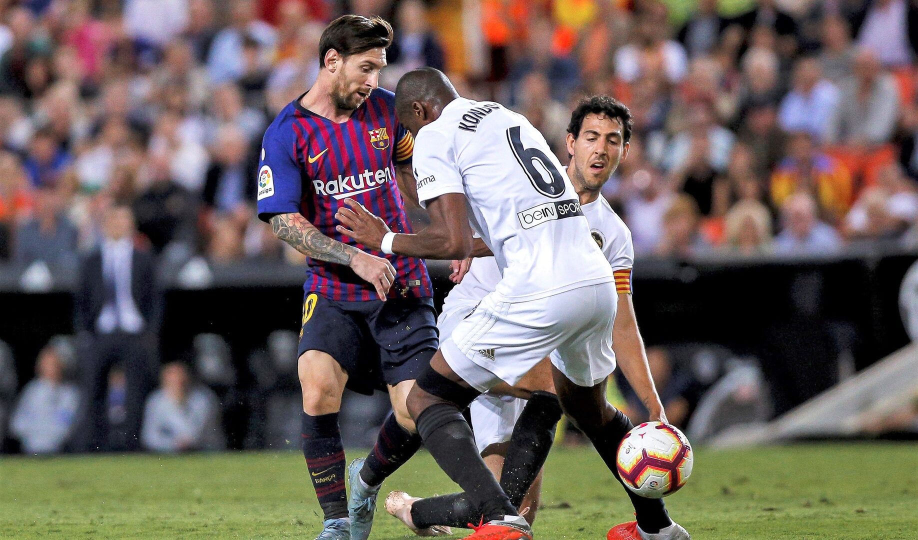 Valencia y Barcelona empataron en Mestalla en un encuentro marcado por los destellos del equipo local y la continuidad y el dominio del visitante, en el que a pesar de la exagerada posesión de balón del cuadro catalán, los locales tuvieron más ocasiones de cara a puerta. El Barça no permitió que su rival tuviera la pelota y el cuadro ché prefería jugar a la contra, pero el dominio territorial forastero tropezó una y otra vez al borde del área local de un Valencia que, a su vez, no supo aprovechar sus opciones con espacios.
