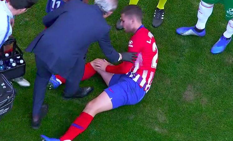 El primer parte médico facilitado por el Atlético informó de "una lesión en la rodilla derecha" y que "queda pendiente de la realización de pruebas complementarias". En el seno del Atlético había máxima preocupación ya que se temía por una lesión de ligamentos. Finalmente, todo quedó en un fuerte esguince de grado II como reza el partido médico del club.