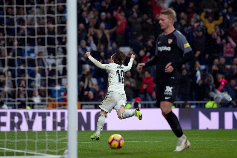 En plena euforia local, llegó el tanto que premió el gran partido de Modric. Carriço cometió un grave error en la salida del balón, el croata se lo robó y no perdonó, y amplió el marcador en un triunfo muy necesitado por el Real Madrid y que aumenta las dudas del Sevilla.