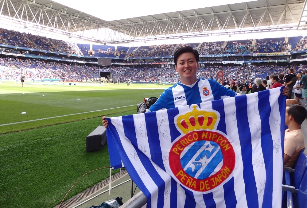 La suyo por el Espanyol es una de esas pasiones que sólo entienden los aficionados al deporte. En 2006 oficializó la peña Perico Nippon. Hoy día siguen siendo solo cinco miembros. "El problema es que no reclutamos públicamente a más gente", se lamenta. Obviamente, admite que el club "no es tan conocido como el Barça y el Madrid" en su país, aunque sí afirma que "los aficionados al fútbol lo conocen perfectamente, especialmente porque allí han jugado tanto Aki Mishizawa como Shunsuke Nakamura".