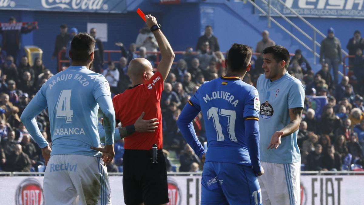 El futbolista del Celta fue expulsado por aplaudir de manera irónica una de las decisiones del colegiado en el Getafe-Celta.