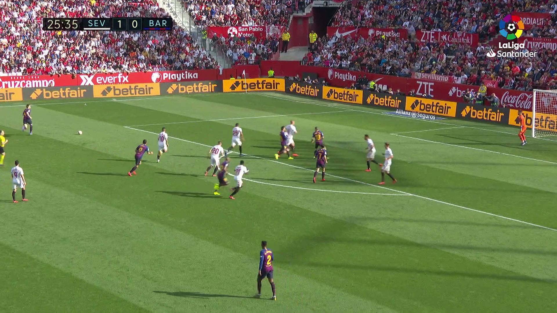 El argentino armó su pierna buena y puso el balón en la mismísima escuadra. Un golazo que abrió la cuenta personal de Messi en el partido.