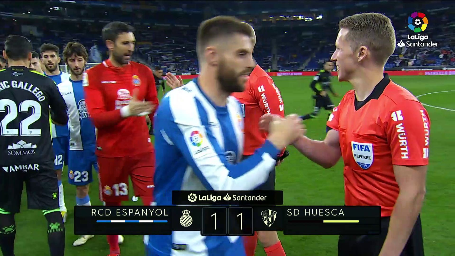 Resumen completo del partido que ha enfrentado a Espanyol y Huesca el día 22 de Febrero de 2019 a las 21:00 correspondiente a la 25ª jornada de la temporada 2018-2019 de LaLiga Santander.