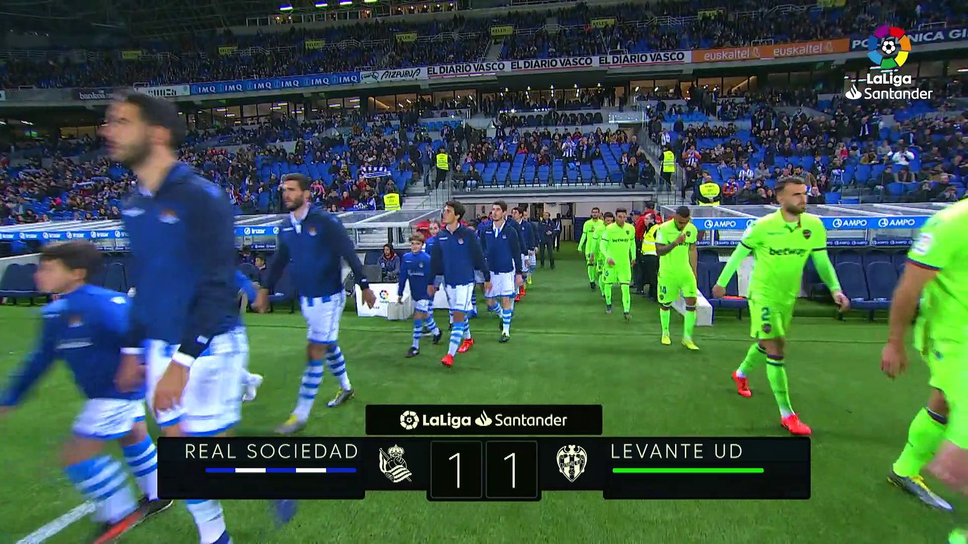 Resumen completo del partido que ha enfrentado a Real Sociedad y Levante el día 15 de Marzo de 2019 a las 21:00 correspondiente a la 28ª jornada de la temporada 2018-2019 de LaLiga Santander.