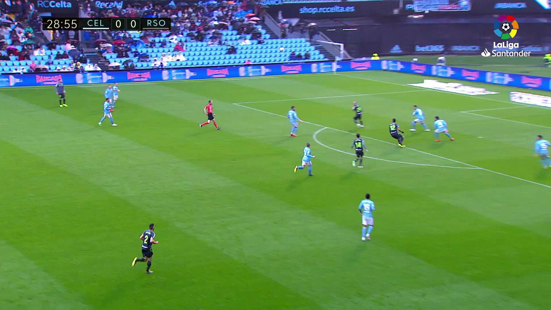 El primero de los despropósitos del árbitro Melero López, que a la media hora señaló penalti a favor de la Real Sociedad por una presunta falta de Olaza a Oyarzabal.