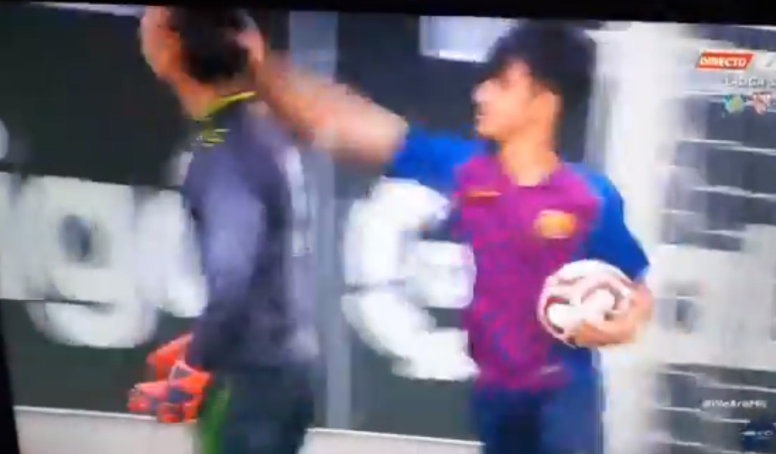 Un canterano del FC Barcelona propina un golpe en la cabeza al portero del RCD Espanyol tras una tanda de penaltis