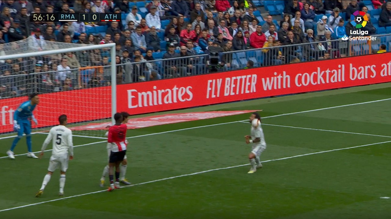 En el minuto 54, Marcelo se jugó el penalti con este despeje.