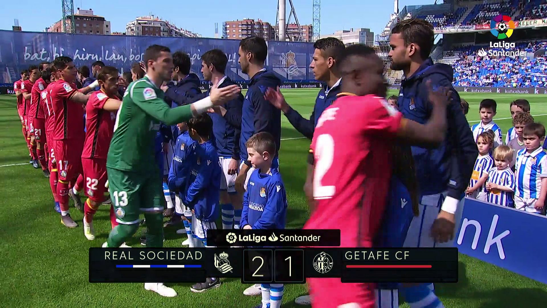 Resumen completo del partido que ha enfrentado a Real Sociedad y Getafe el día 28 de Abril de 2019 a las 16:15 correspondiente a la 35ª jornada de la temporada 2018-2019 de LaLiga Santander.