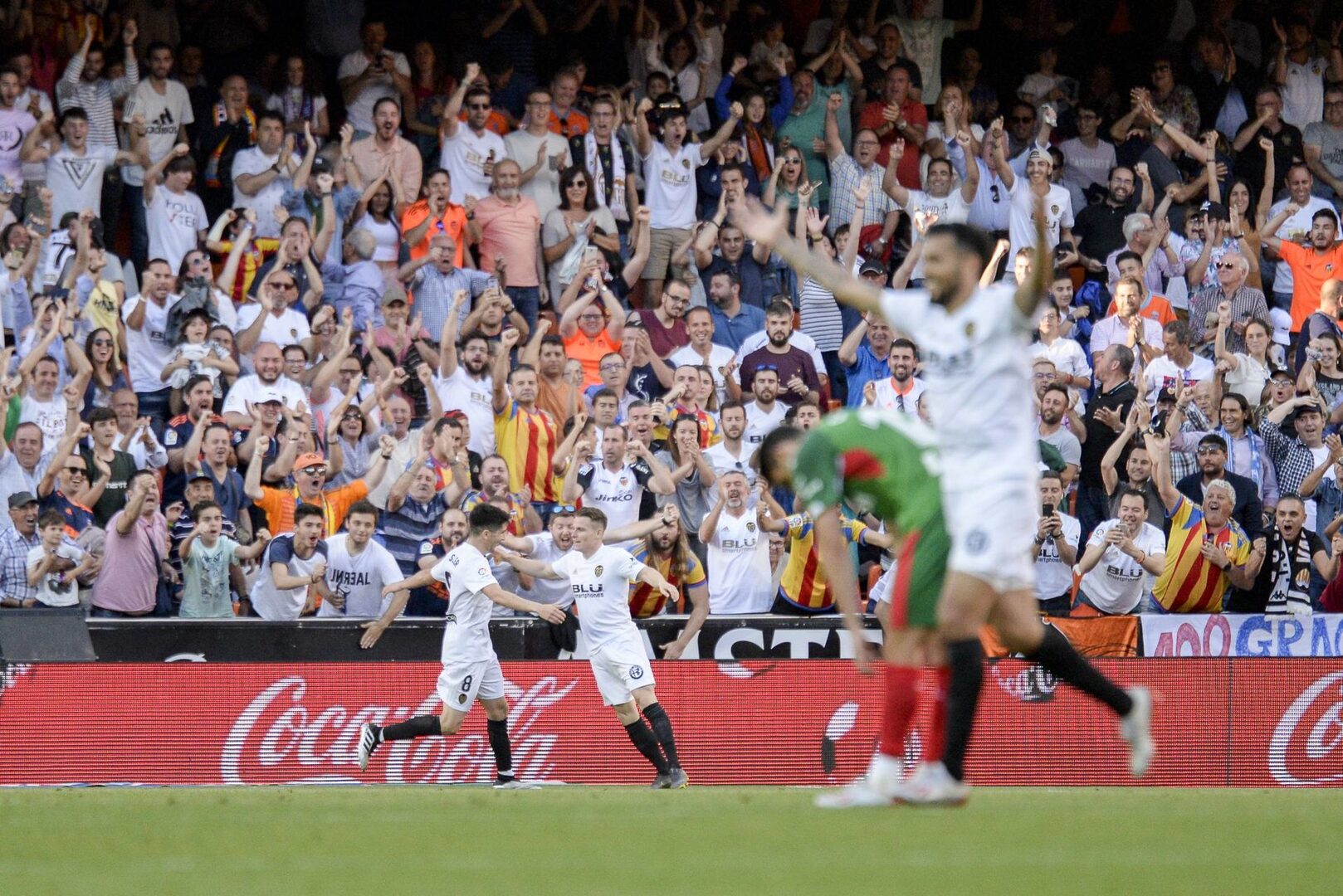En Mestalla, el Valencia se ha sobrepuesto a su reciente eliminación en semifinales de la Europa League ante el Arsenal y a un tempranero gol en contra. Fue Ximo Navarro quien había logrado adelantar al Alavés de cabeza en un córner, aunque Carlos Soler igualó a la media hora tras un fallo defensivo de los babazorros. Santi Mina volteó el marcador antes del descanso, con otro testarazo y también a la salida de un córner, mientras que la diana que otorgó la tranquilidad a los chés fue de Kevin Gameiro, en el minuto 68, abrochando el triunfo con el que sumar ahora 58 puntos y ser provisionalmente el inquilino de la cuarta posición.