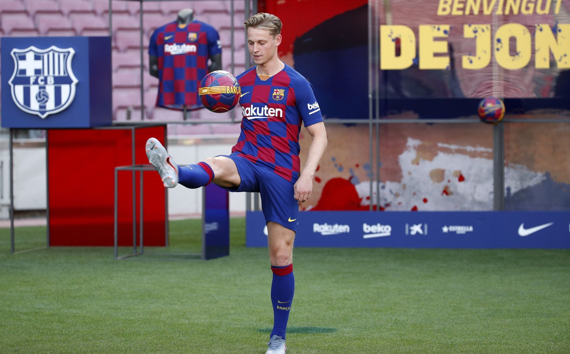 Todavía a pie de campo, De Jong pronunció sus primeras palabras tras pisar por vez primera la hierba del Camp Nou. "Hola a todos. Gracias por estar aquí y ¡visca el Barça!", dijo De Jong en un perfecto castellano.