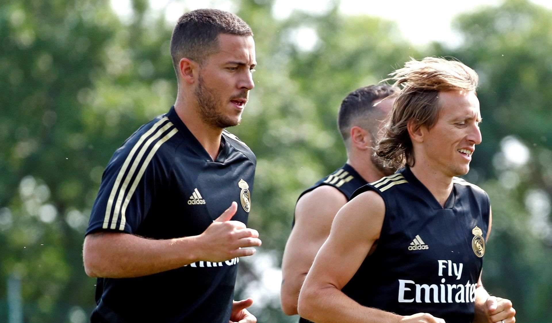 Los jugadores madridistas han completado sus dos primeras sesiones de entrenamiento con un exigente circuito de carrera, abdominales y flexiones.