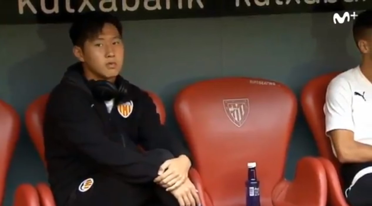 Lo cierto es que, minutos antes de comenzar el choque, un joven aficionado, que portaba una pancarta con la bandera de Corea del Sur y con el nombre 'Lee', reclamó la presencia en las gradas del jugador asiático, que se encontraba en el banquillo, con los cascos puestos y mirando el móvil, junto a Ferran Torres (también con auriculares) y Rubén Sobrino.