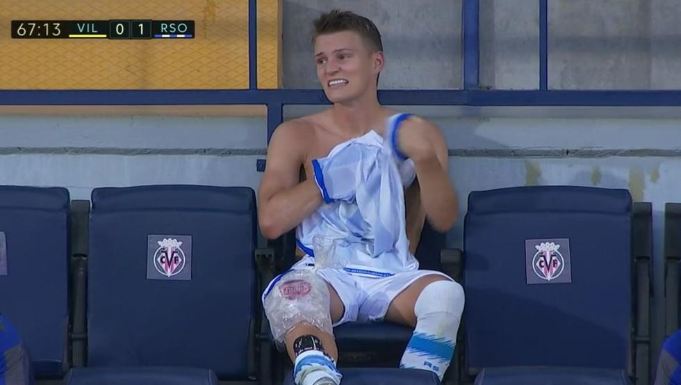 El pasado lunes, en el partido que la Real Sociedad ganó ante el Villarreal en el Nuevo Estadio de la Cerámica, Odegaard volvió a dar una lección de fútbol hasta el momento en el que fue cambiado, en el minuto 65. No podía más. Las imágenes del noruego en el banquillo tras la sustitución, retorcido de dolor y con una bolsa de hielo cubriendo su rodilla derecha, llaman la atención. No es habitual ver ese compromiso extremo de un jugador cedido.