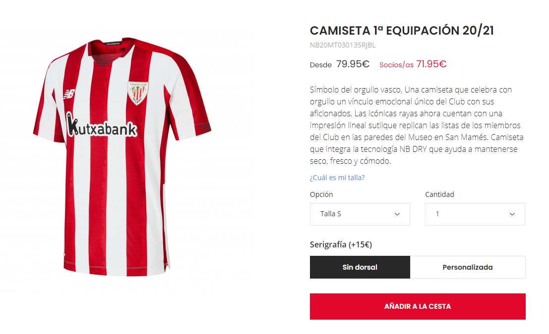 Replica de la camiseta del Athletic que cuesta 80 €. 15 € más si se le quiere imprimir seriegrafía