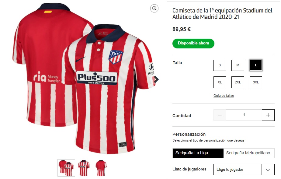 Réplica de la camiseta del Atlético de Madrid que cuesta 90 €. 18 € más con seriegrafía