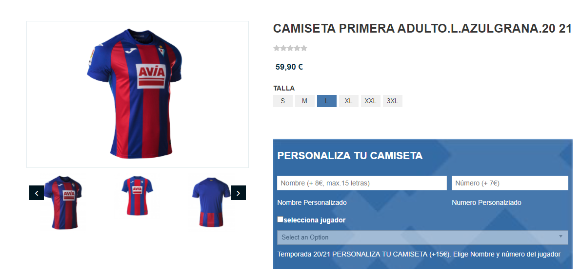 El equipo eibarrés pone el precio de su camiseta a 60 €. Nombre y dorsal 15 € (nombre 8 € y dorsal 7€)