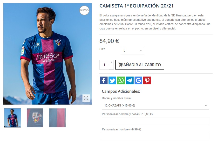 El equipo oscense tiene su camiseta en venta online por 70€. Como varios equipos en LaLiga tiene el precio de 15 € por la seriegrafía